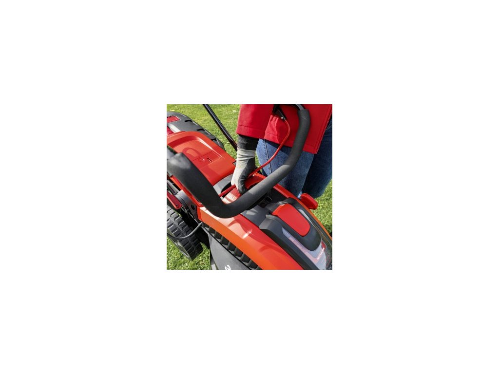 - Pohodlnou práci zajišťuje také centrální 6-ti polohové nastavení výšky sečení (25-75 mm) a integrovaná rukojeť.