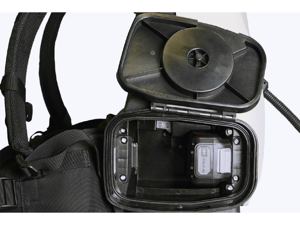 Ergonomické provedení 6l nádrže, nízká hmotnost a profesionální zádové popruhy usnadňují práci a prodlužují provozní dobu. Veškeré ovládání (nastavení tlaku a nastavení výkonu ventilátoru) probíhá skrz intuitivní řídící panel umístěný na ručním aplikátoru (hmotnost aplikátoru je pouze 1 kg). Součástí je indikátor stavu nabití baterie. K dispozici je uživatelům také možnost aretace spouště pro nepřetržitou aplikaci.