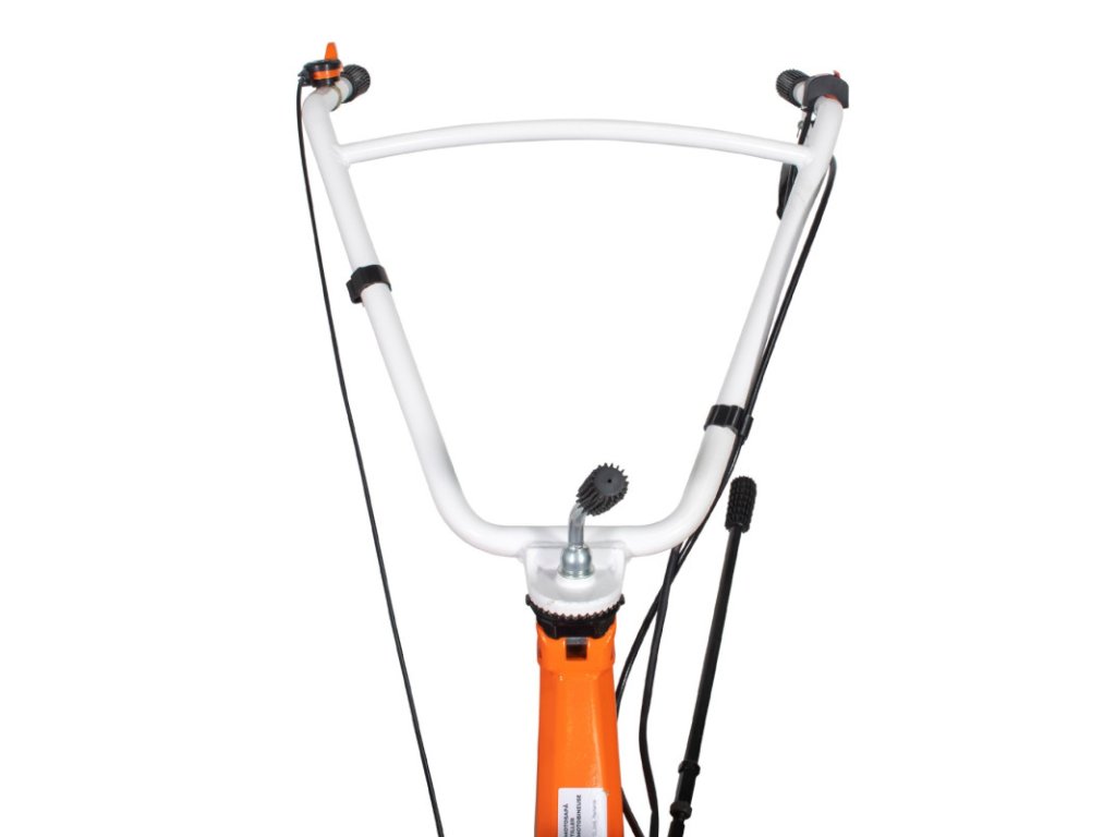 - Přestože kultivátor váží 80 kg, snadno se s ním manipuluje díky nastavitelným kovovým madlům a gumovým rukojetím, které jsou určeny k tlumení vibrací generovaných kultivátorem.