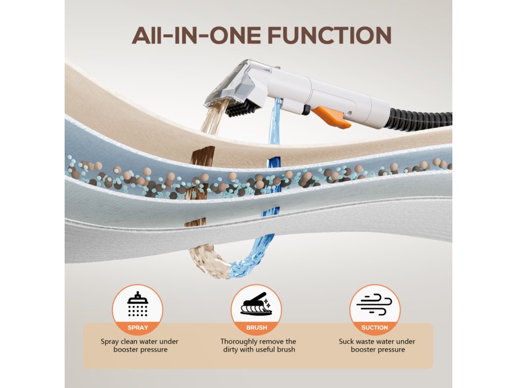 Teendow C5 je moderní přenosný tepovač a vysavač vybavený několika praktickými nástavci, které si poradí s každou výzvou. Vylitá voda, káva na koberci, víno na křesle, špinavá sedací souprava od dětských ručiček nebo otisky tlapek na čalounění v autě budou díky tomuto zařízení minulostí. Se silným výkonem 500 W nabízí působivý maximální sací výkon 11 kPa, což zajišťuje hluboké a důkladné čištění.