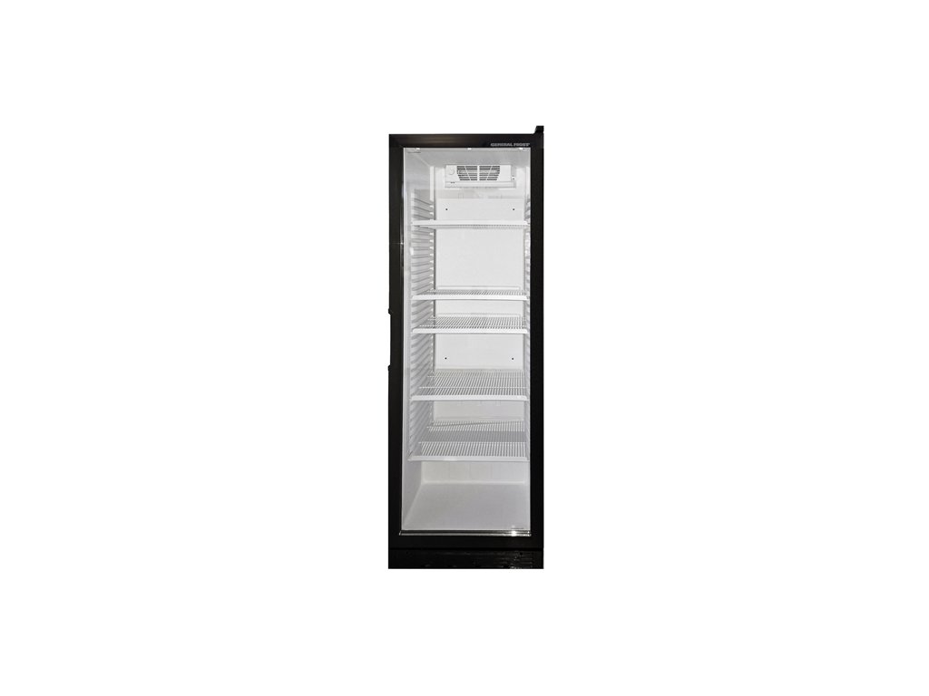 Prosklená chladicí vitrína General Frost GF38DM-T302EX s kapacitou až pro 476 plechovek o objemu 0,33 l. Vitrína má celkový objem 373 litrů a výšku 181 cm. Chladicí teplota je v rozsahu od 1 až 9 °C. Uvnitř chladničky naleznete 5 drátěných poliček pro uspořádání zboží. Ve spodní části jsou 2 zadní kolečka a 2 přední nožičky pro bezpečnou manipulaci.