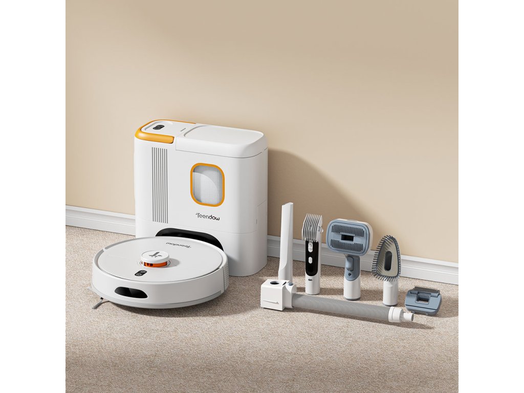 Design 3 v 1 pro čištění a péči o domácí mazlíčky Inovativní design Teendow kombinuje nástroje pro péči o domácí mazlíčky s robotickým vysavačem. Umožňuje domácnostem s mazlíčky snadno provádět každodenní úklid a zároveň pečovat o své zvířecí miláčky.