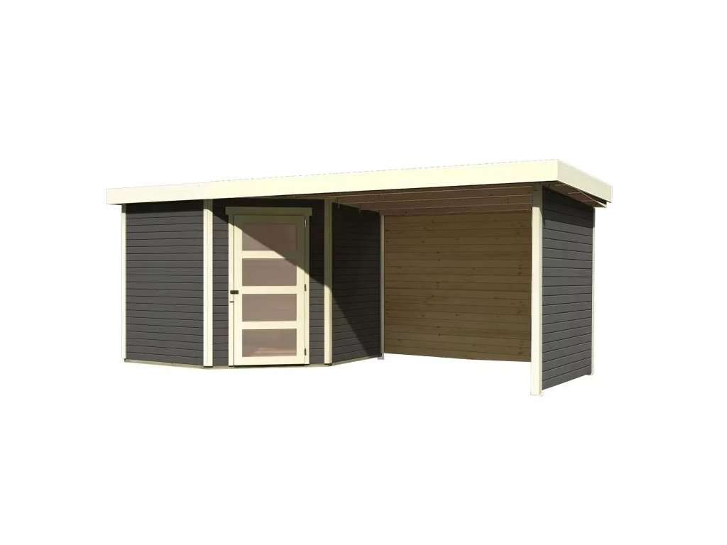 dřevěný domek KARIBU SCHWANDORF 5 + přístavek 280 cm včetně zadní a boční stěny (9220) terragrau LG3919