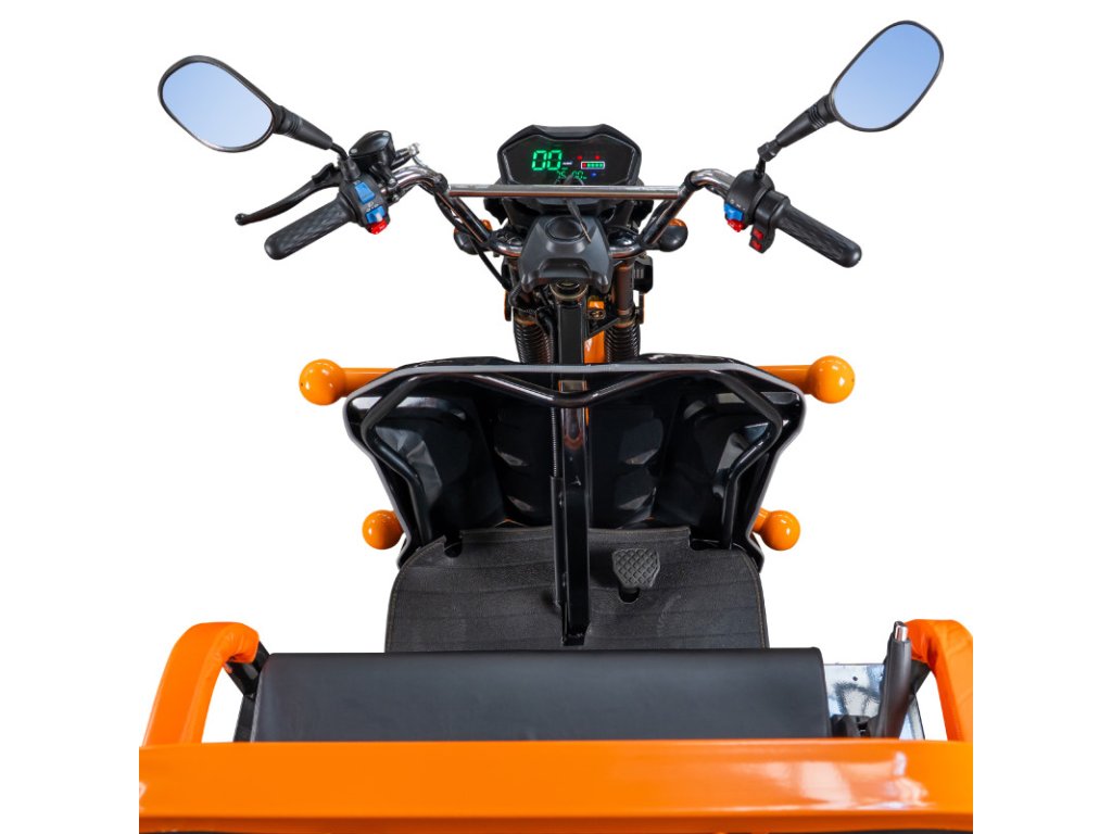 Tříkolka je vybavena extra velkým LCD displejem, který výrazně zlepšuje uživatelský komfort. Velkorysá obrazovka umožňuje rychlé a přehledné zobrazení všech důležitých údajů – rychlosti, stavu baterie, počtu ujetých kilometrů a dalších funkcí – i při jasném denním světle. Přispívá tak k bezpečnějšímu a intuitivnějšímu používání.