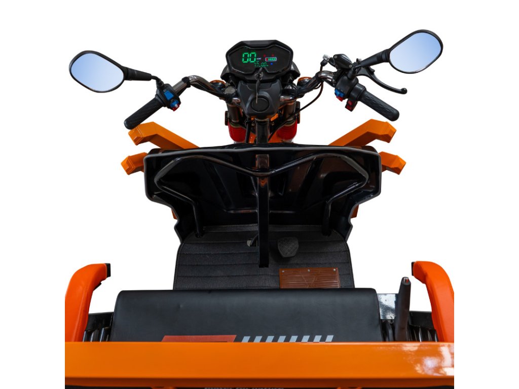 Tříkolka je vybavena extra velkým LCD displejem, který výrazně zlepšuje uživatelský komfort. Velkorysá obrazovka umožňuje rychlé a přehledné zobrazení všech důležitých údajů – rychlosti, stavu baterie, počtu ujetých kilometrů a dalších funkcí – i při jasném denním světle. Přispívá tak k bezpečnějšímu a intuitivnějšímu používání.