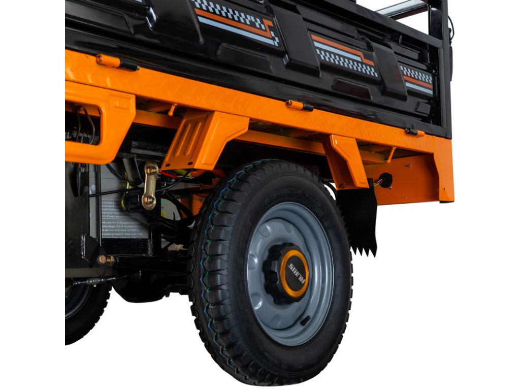 Pro zvýšení bezpečnosti je elektrický pickup vybaven kombinovaným brzdovým systémem – s kotoučovými brzdami vpředu a bubnovými vzadu. Tato konfigurace zajišťuje výbornou bezpečnost, efektivitu a dlouhou životnost, čímž nabízí spolehlivé a vyvážené řešení pro lehké přepravní potřeby.