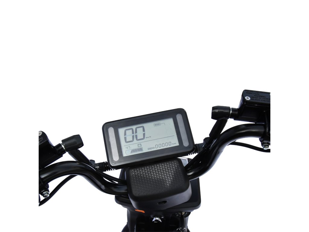 - Vybaven motorem o výkonu 1000 W a maximální rychlost je elektronicky omezena na 38 km/h