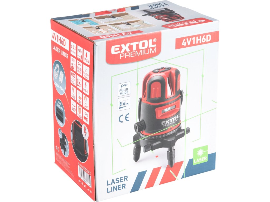 EXTOL PREMIUM 4V1H6D - laser zelený liniový, křížový samonivelační