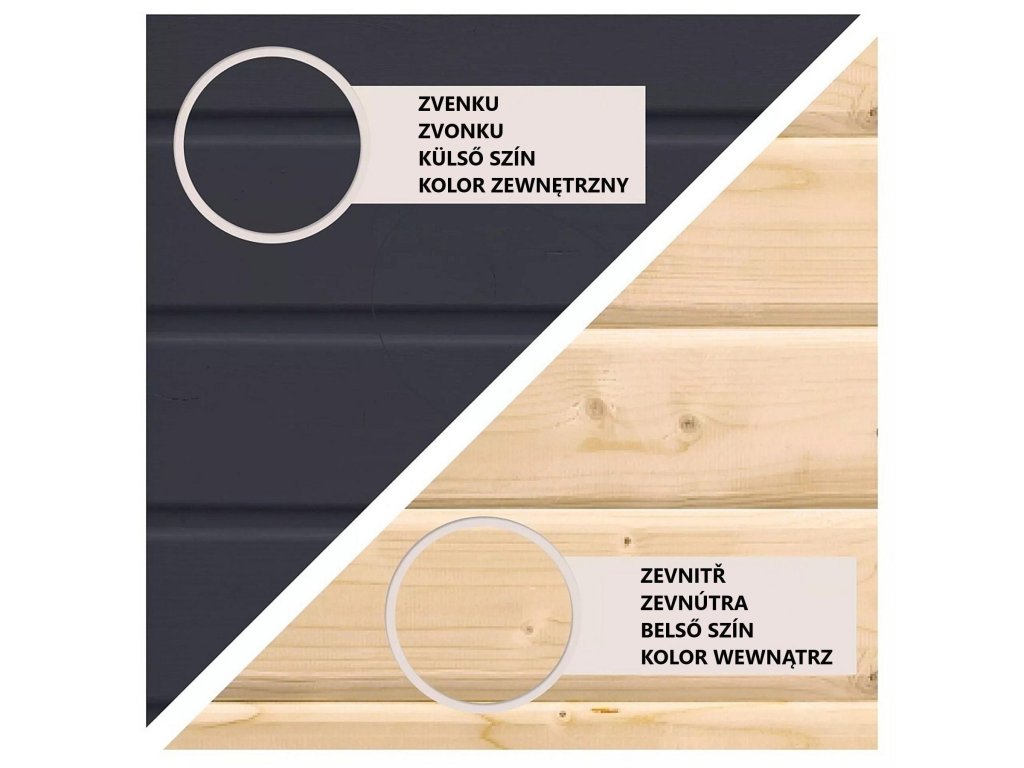 Tento model domku dodáváme v profesionálním nátěru KARIBU (odstín antracit RAL 7016):
