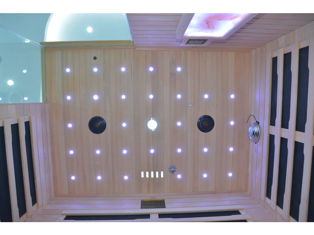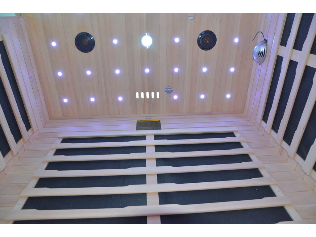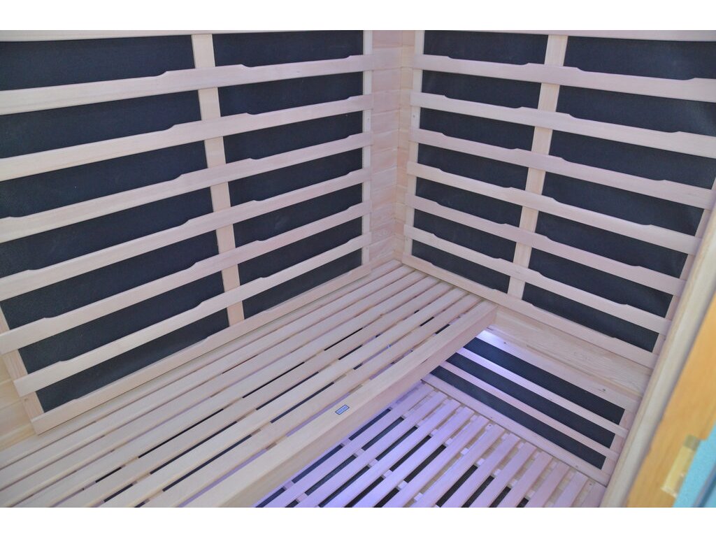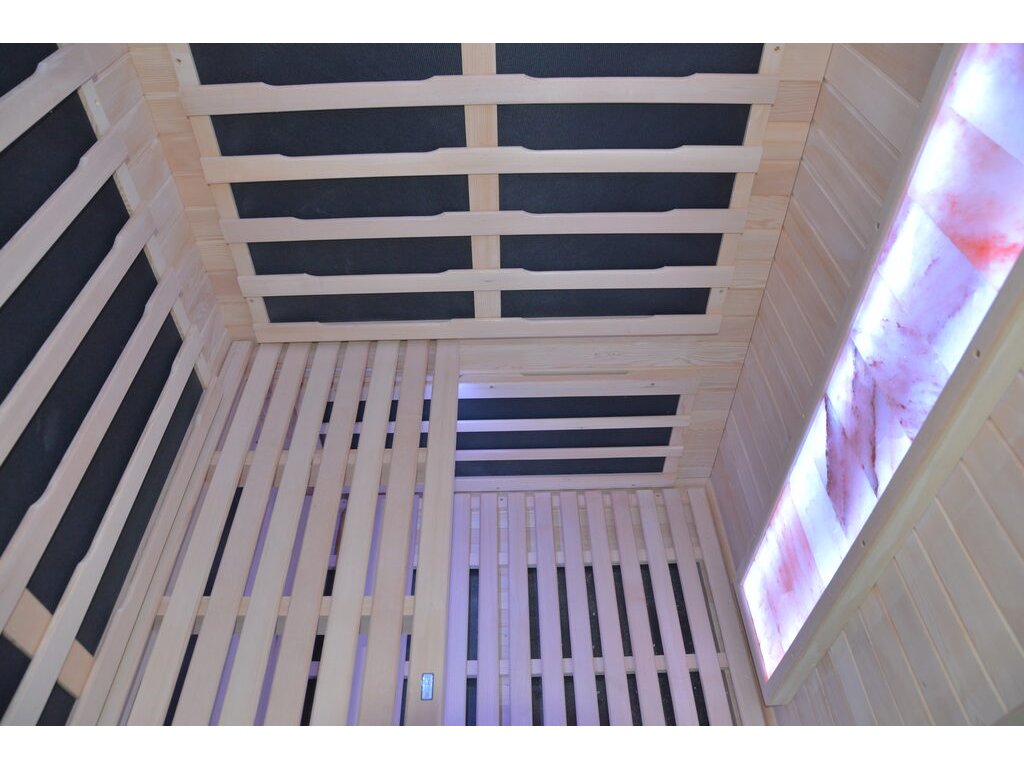 V infrasauně je rozmístěno sedm karbonových topidel. Ve srovnání s jinými typy karbonové zářiče tvoří tenké pásy, které vyvinou povrchovou teplotu 70 - 170 stupňů Celsia.