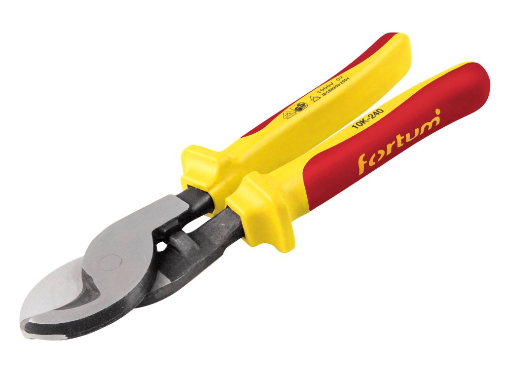 Čistá práce. Na elektrické kabely jsou kleště krátké, od toho jsou tu Fortum nůžky na kabely. Ty dokáží snadno přestřihnout kabely silné jako prst – rychle, přesně a čistě, bez deformování jednotlivých vodičů. Díky speciálně tvarovanému ostří nůžkami budete moci kabel i vodiče pohodlně odizolovat. A to vše třeba i „naživo“ – rukojeti jsou izolované na 1000V.Doplňkové parametry