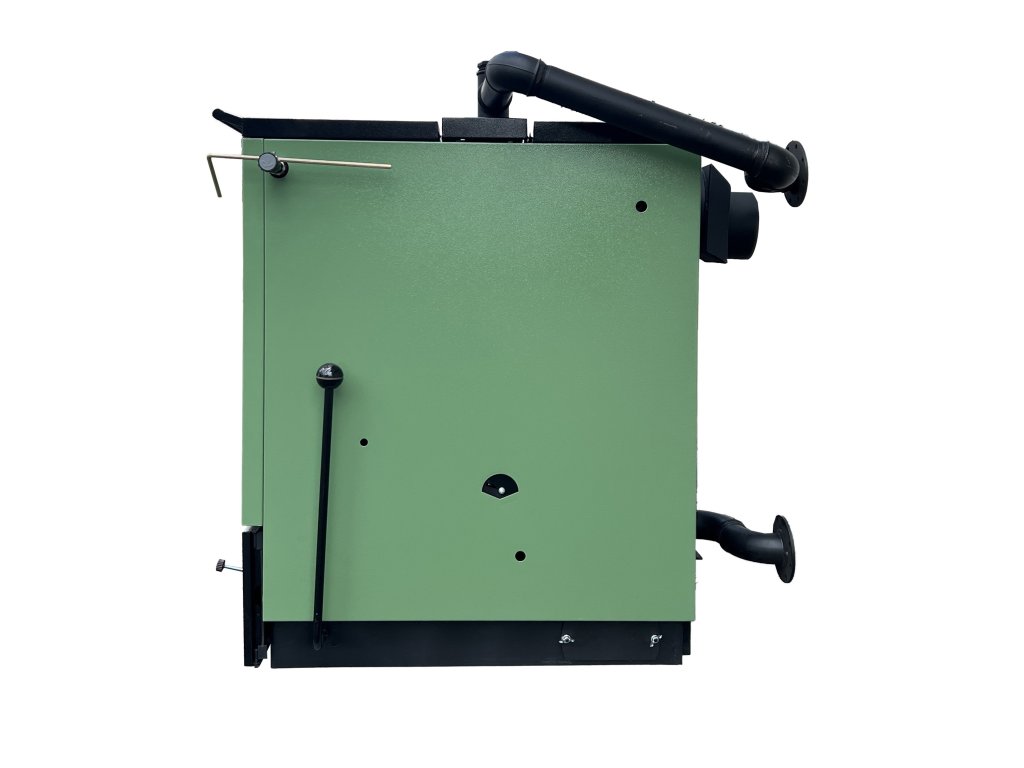 Regulace sekundárního vzduchu přiváděného do spalovací komory zvyšuje účinnost kotle. Primární vzduch je přiváděn pod rošt regulovatelnou klapkou v popelníkových dvířkách. Regulace se provádí ručně nebo automatickým regulátorem výkonu (TRV), který je dodáván jako příslušenství současně s kotlem. Vstup a výstup topné vody je standartně opatřen přírubami G2″, je možno si ale objednat i kotel s přírubami G 1 1/2″ nebo DN 65. Kouřovod je v ose kotle na zadní straně.
