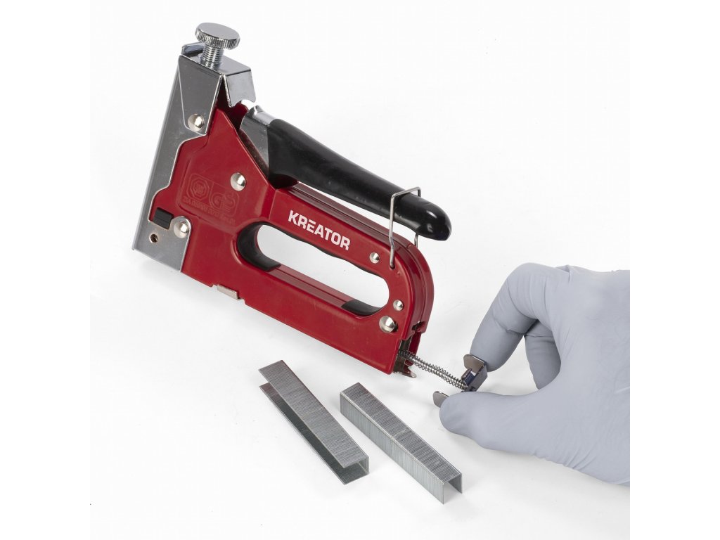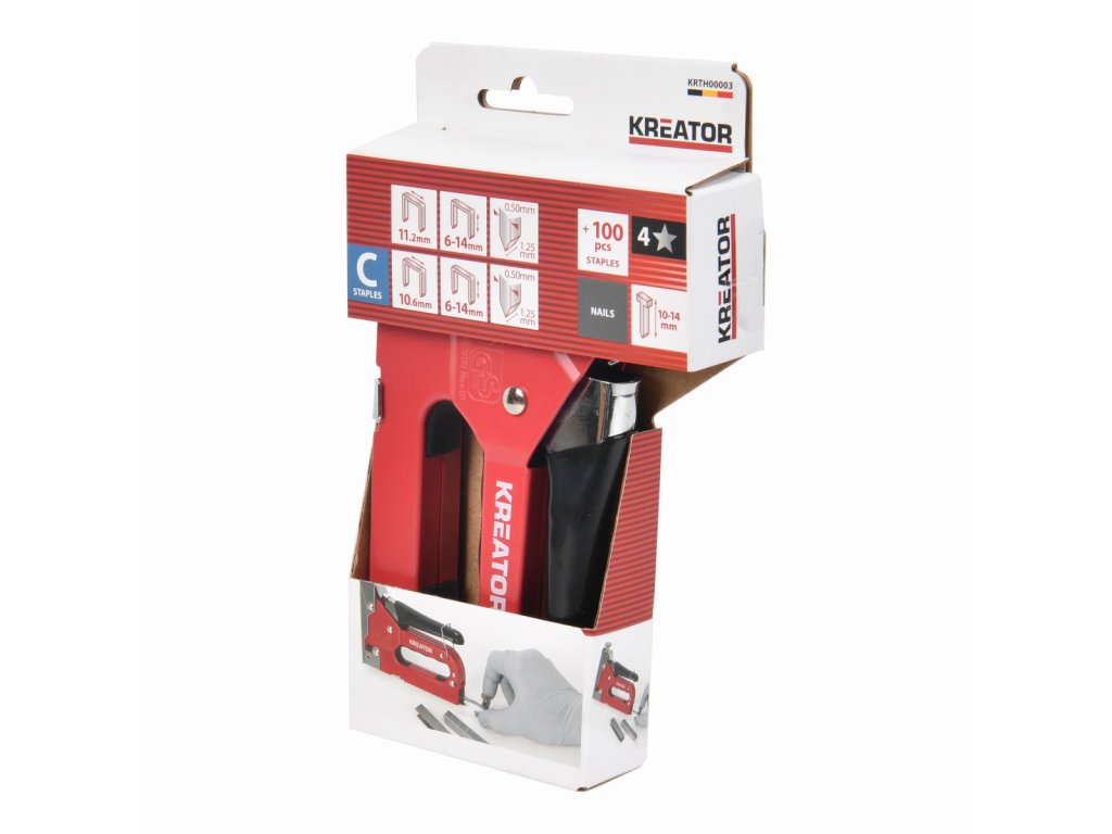 Rozlučte se se šrouby, lepidlem nebo připínáčky. Tato ruční sponkovačka KRTH00003 z naší řady Kreator se stane novým „sponkovacím“ nástrojem ve vaší sadě nářadí. Tato sponkovačka umožňuje sešívat různé materiály, jako je karton, fólie, plachty, koberce, dřevo a další. Tato sešívačka je dodávána také se 100 ocelovými sponkami o rozměrech 8 mm, takže se můžete okamžitě pustit do práce. Sponkovačka se snadno doplňuje a pracuje se sponkami o délce od 6 mm do 14 mm. Díky robustnímu kovovému pouzdru a ergonomické rukojeti je odolným nástrojem, který nabízí dostatek pohodlí při používání. Zámek rukojeti navíc umožňuje snadné a kompaktní skladování.Obsah balení: