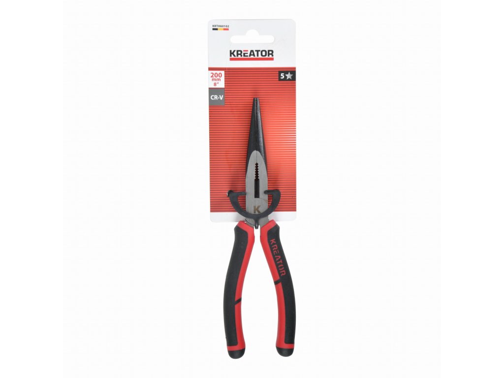Tyto vysoce kvalitní kleště KRTH60102 od Kreator s dlouhými plochými čelistmi lze použít k držení, stříhání, odizolování a krimpování vodičů o průměru až 50 mm. Jsou vyrobeny z materiálu CR-V s povrchovou úpravou satin a mají délku 200 mm. Měkké gumové rukojeti poskytují pevný, protiskluzový úchop a pohodlné používání.Obsah balení: