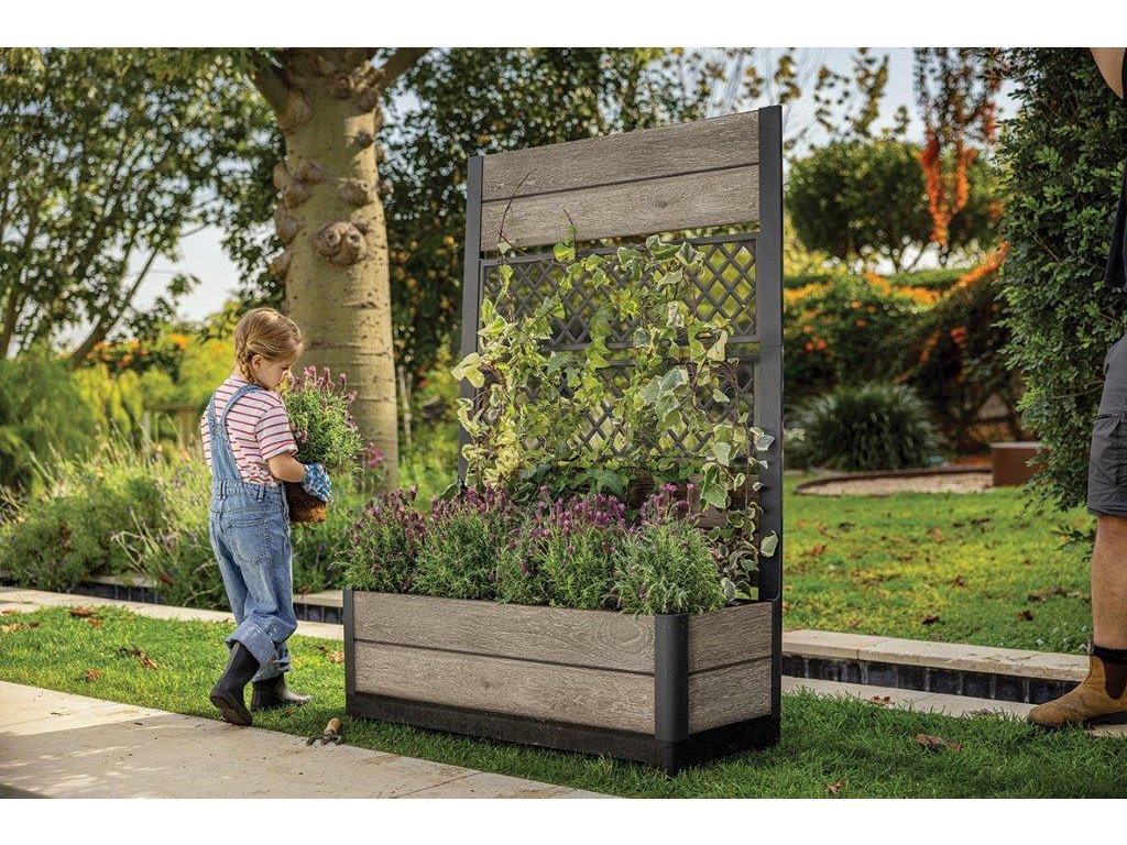 Keter Deco Tulip Ashwood přináší kombinaci funkčnosti a designu. Díky vysoké zadní stěně vytvoří přirozený předěl prostoru, zatímco chytrý zavlažovací systém zajistí rostlinám stabilní přísun vody. Plastová konstrukce s dekorem dřeva je nejen odolná vůči UV záření a počasí, ale také nenáročná na údržbu. Modulární zadní stěnu snadno přizpůsobíte podle druhu rostlin nebo prostoru, který máte k dispozici.