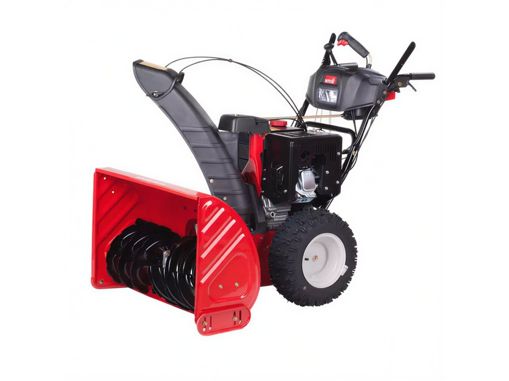 - Xtreme-Auger šneky – každý se otáčí kolem vlastní osy, má vlastní střižný šroub a minimalizuje riziko selhání; poradí si i s uježděným a těžkým sněhem.