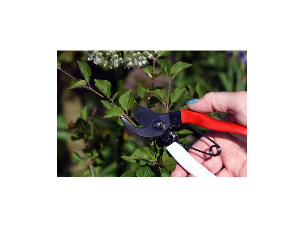 Kromě tvrdosti se materiál vyznačuje i speciální pružností – čepele tak po každém střihu zůstávají perfektně vyrovnané, i při dlouhodobém používání. Dvojité úhly broušení zajišťují hladký střih bez drcení dřeva a minimální poškození rostlin. Všechny součásti jsou pak sestaveny tak, aby byly nůžky maximálně funkční, jednoduché a zároveň dlouhodobě spolehlivé.