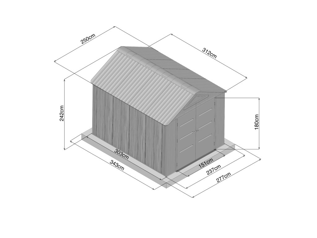 Robustní plastový domek "nové generace" k uskladnění zahrádkářských, sportovních, bazénových, grilovacích, campingových, motoristických a dalších potřeb. Moderní design, snadná montáž, celoroční použití. Zahradní domek má nosnou kovovou konstrukci a dvojité stěny, střecha, dvojité dveře, podlaha jsou vyrobeny z masivního velmi odolného a prakticky nerozbitného plastu (vysokopevnostní polyethylen s UV filtrem). Plastová protiskluzová podlaha je součástí domku (je v ceně). Domek je vybaven dvoukřídlými dveřmi na pantech. Síla dvojité plastové stěny je 22 mm, síla střechy je 36 mm. Sklon střechy je 30o, což výrazně snižuje množství a tlak sněhu na střechu. Materiál domku nežloutne ani nekřehne, takže odpadá pravidelné natírání domku jako je nutné v případě např. dřevěných domků - zahradní plastový domek je prakticky bezúdržbový. Domek je navržen a vyroben tak, aby montáž byla co nejjednodušší a nejkratší. Jednotlivé díly pouze zaklapnete do sousedních dílů a spoj zajistíte šroubkem.