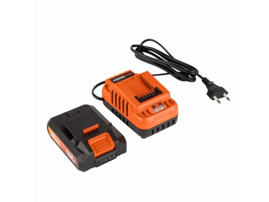 Tato sada POWDP90620 od Powerplus obsahuje vše, co potřebujete, abyste mohli začít s nářadím Dual Power, 20 V baterii a odpovídající nabíječku. Tato 20V baterie je kompatibilní se všemi elektrickými a zahradními nástroji 20 V řady Dual Power. Baterie má kapacitu 2000 mAh p. Baterie je vybavena 3 LED kontrolkami indikujícími zbývající energii baterie, abyste věděli, kdy je třeba ji nabít. Přiložená nabíječka je kompatibilní s 20V i 40V (2x20V) bateriemi Dual Power.
