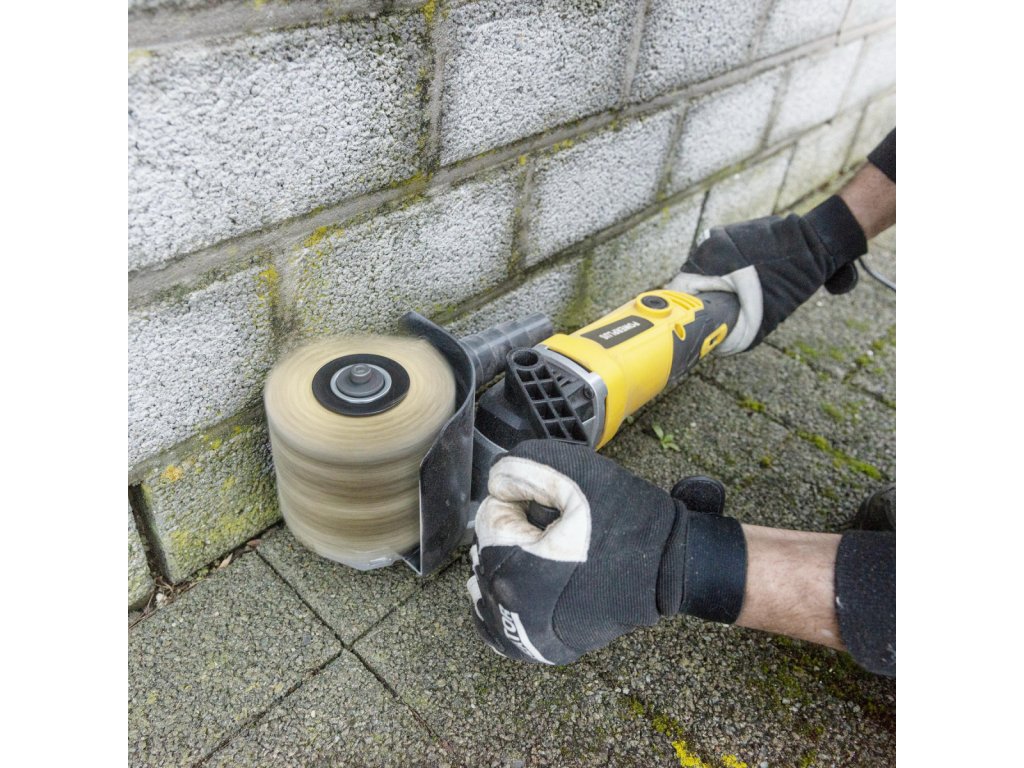 Bruska je dodávána s ocelovým kartáčovým kotoučem KRT271005, takže můžete ihned začít! Tento kartáč je ideální pro hrubé odstraňování nátěrů z tvrdého dřeva nebo nečistot ze kamene či betonu.