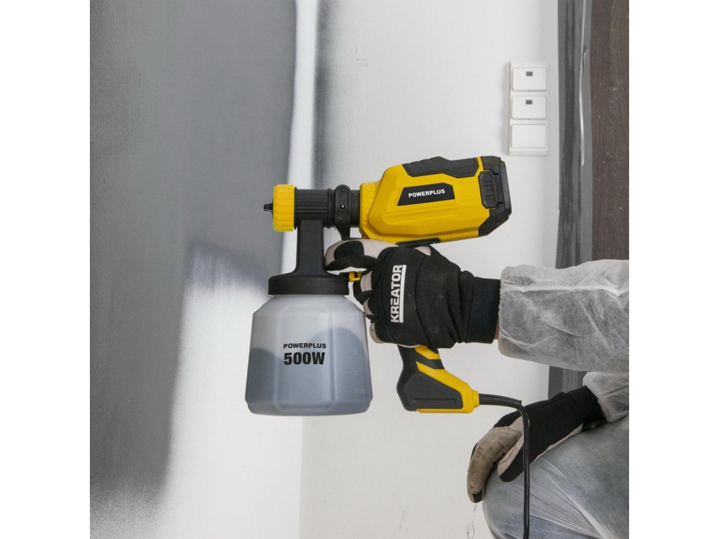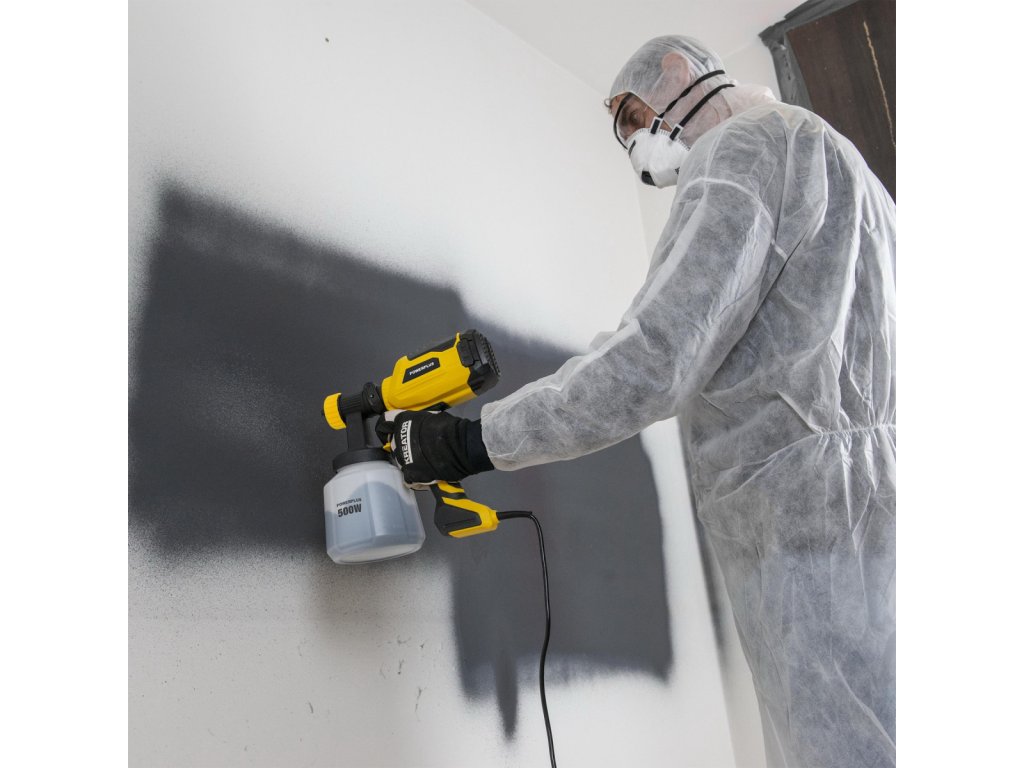 Co zvládnete s tímto startovacím setem stříkací pistole? S touto pistolí snadno natřete větší plochy jako zahradní domek nebo ploty. Výsledek bude vždy čistý a rovnoměrný. Výkonný stříkací přístroj s příkonem 500 W má velkou nádobu o objemu 1,4 l, kterou můžete naplnit základními nátěry, vodou i rozpouštědlovou barvou, laky, oleji, lazurami a dalšími ochrannými nebo latexovými nátěry na dřevo. Můžete stříkat kapaliny s viskozitou až 100 din/s a s max. průtokem barvy až 1000 g/min.