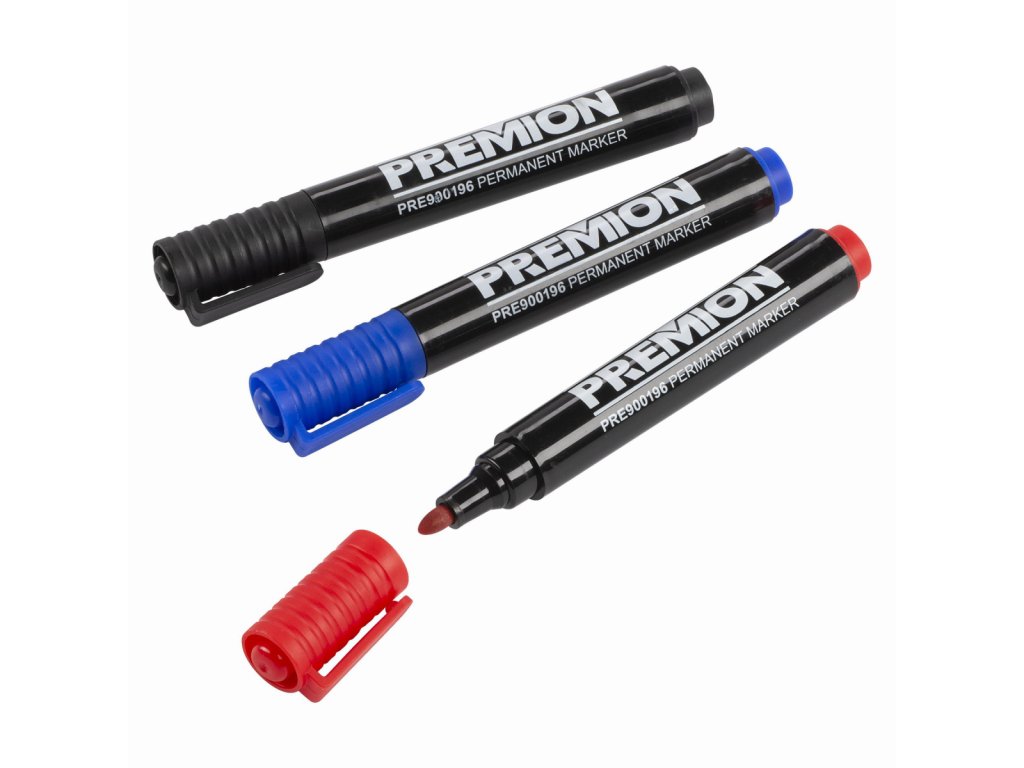 - 3× popisovač (modrý, červený, černý)