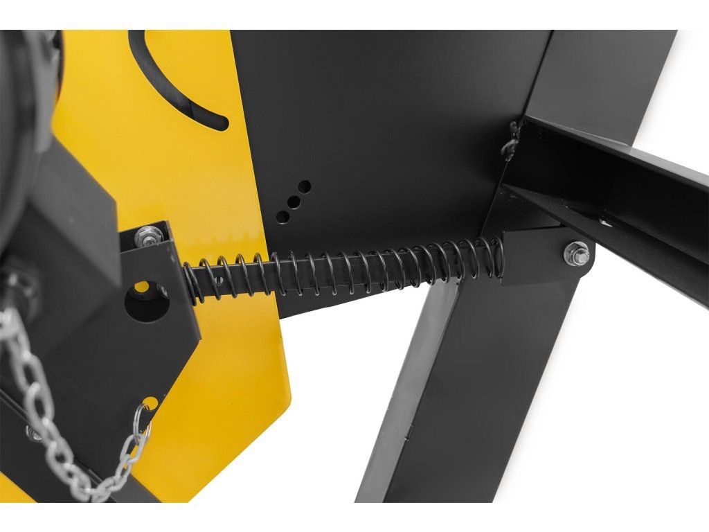 Pryč už jsou časy, kdy řezání na cirkuli vyžadovalo notnou dávku odvahy a zručnosti, aby nedošlo k ošklivému zranění. Pila disponuje několika moderními bezpečnostními prvky, díky nimž se nemáte šanci zranit. Zásadní je bezpečnostní vypínač, který se spíná při zavření krytu podavače. Při otevřeném krytu tak nelze podavač tlačit proti kotouči, čímž kotouč zůstává schovaný. Tvar samotného podavače je designován tak, aby se poleno nemohlo otáčet a nemohlo tak dojít k neočekávanému pohybu. Pružinový systém zase zajistí to, aby se při uříznutí špalku podavač automaticky vrátil do původní polohy (bez vylezlého kotouče). V neposlední řadě je pila vybavena účinnou brzdou, která při vypnutí stroje okamžitě kotouč zastaví. Zásadní je také samotná robustní konstrukce pily tvořená svařovanými ocelovými profily a stojnou, díky čemuž je pila při práci maximálně odolná vůči překlopení.