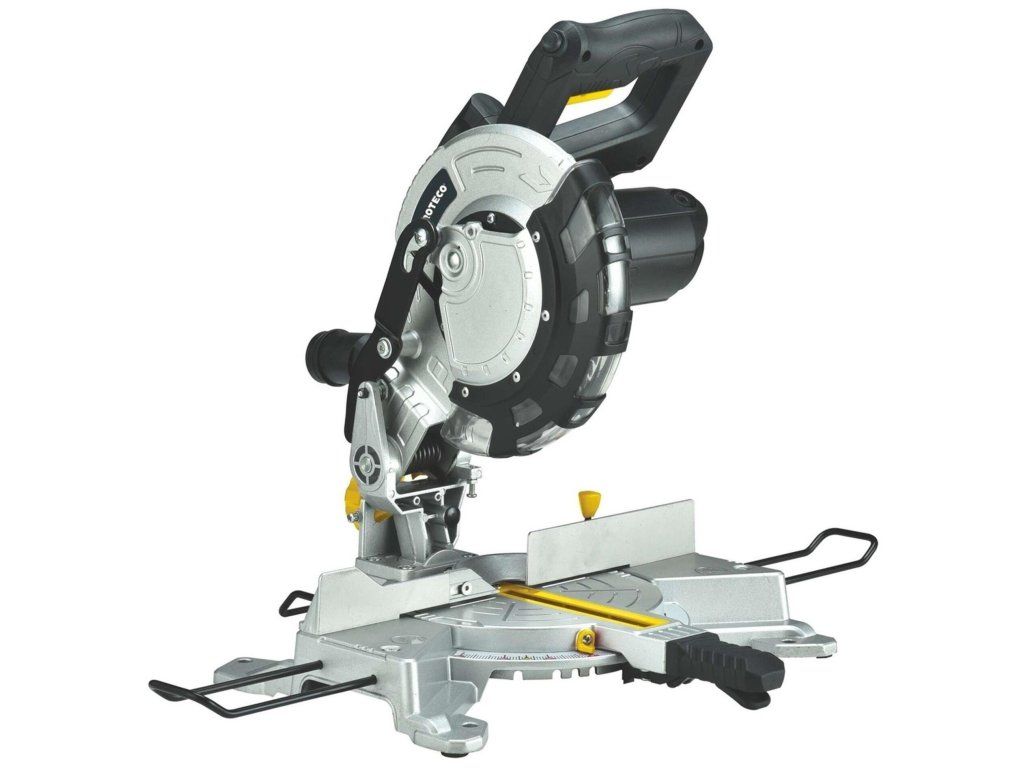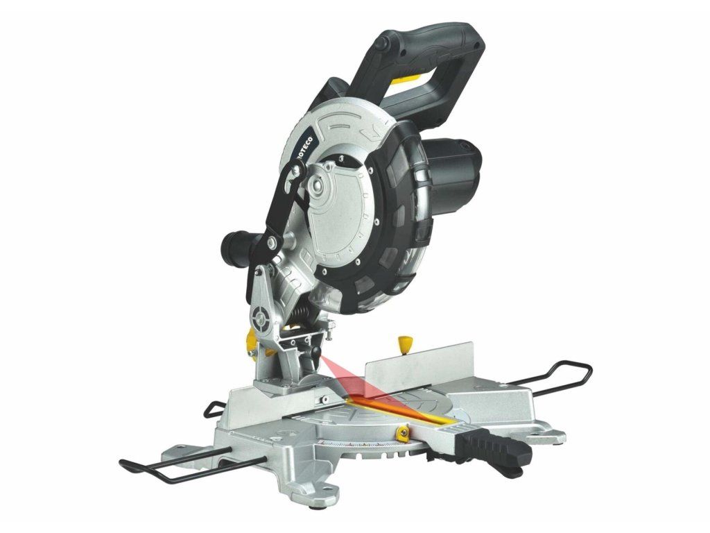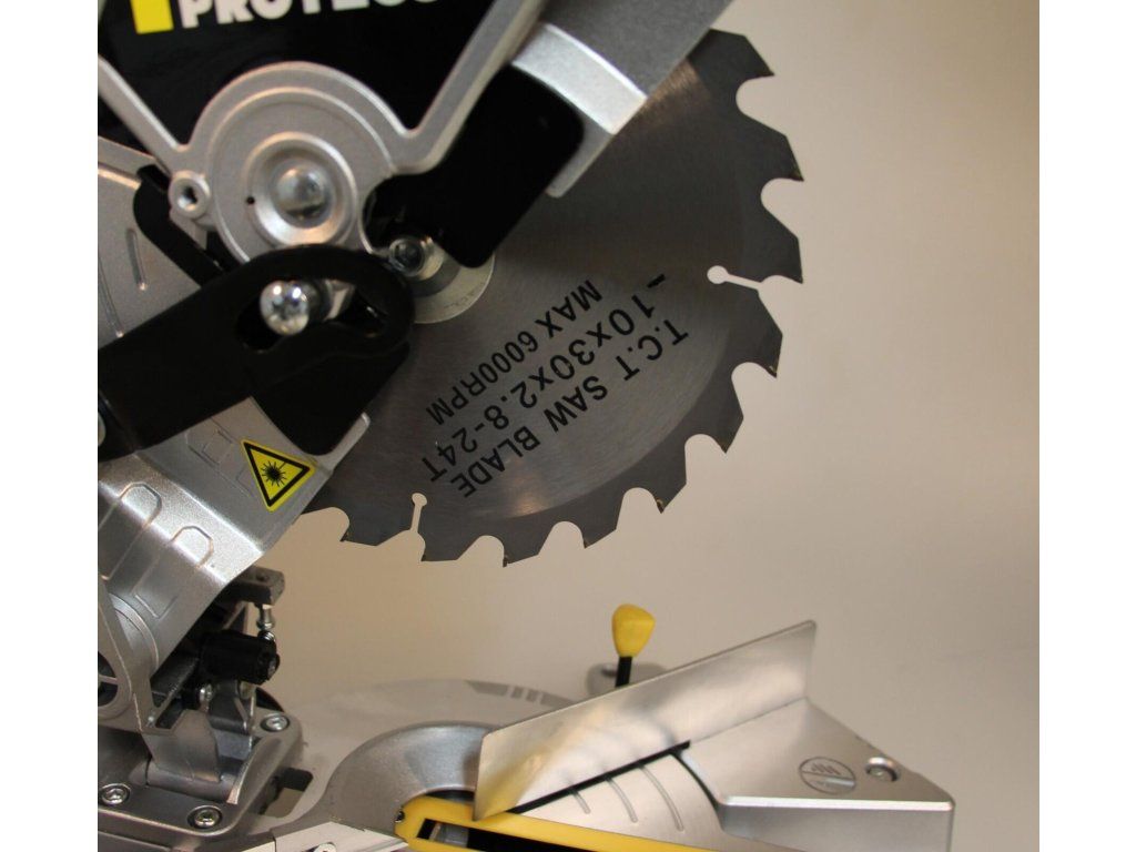 Pokosová pila s laserem Proteco je vhodná ke kapování, příčnému řezání dřeva a plastu v závislosti na její velikost. Možnost otáčení stolu a naklánění kotouče. Laserový ukazatel usnadňuje rovný řez. Průměr kotouče je 210 mm, příkon 1 400 W.