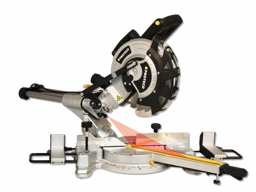 Pokosová pila s posuvem a laserem Proteco je vhodná ke kapování, podélnému a příčnému řezání dřeva a plastu v závislosti na její velikost. Možnost otáčení stolu a naklápění kotouče. Laserový ukazatel usnadňuje rovný řez. Radiální posuv řezací jednotky umožňuje řezání dřeva. Odolná konstrukce s trubkovým vedením pojezdu a ergonomická ovládací rukojeť. Posuvné hliníkové podpěry děleného materiálu.