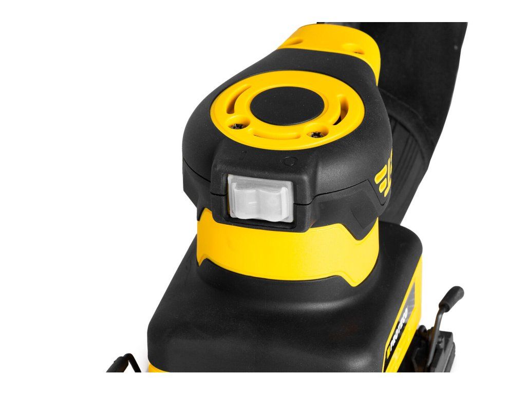 Bruska nabízí optimální výkon díky 14 500 ot./min., což zajišťuje rychlé a efektivní dokončení brusných úkolů s vysokou precizností. Navíc je vybavena ergonomickým designem který maximalizuje pohodlí a kontrolu během práce. Jednou z klíčových vlastností je aretace spínacího tlačítka, která umožňuje kontinuální provoz bez nutnosti stále držet tlačítko stisknuté. Funkce je neocenitelná zejména při delších pracovních úkonech, kdy se snižuje únava rukou a zvyšuje se komfort při manipulaci s nástrojem. Výměna brusného papíru je snadná a jednoduchá, díky inovativnímu mechanismu. Stačí pouze odjistit dvě pérka na protilehlích stranách vibrační plochy a můžete snadno vyměnit brusný papír bez nadměrného usilí. Tento jednoduchý systém umožňuje rychlou úpravu a minimalizuje ztrátu času při práci.