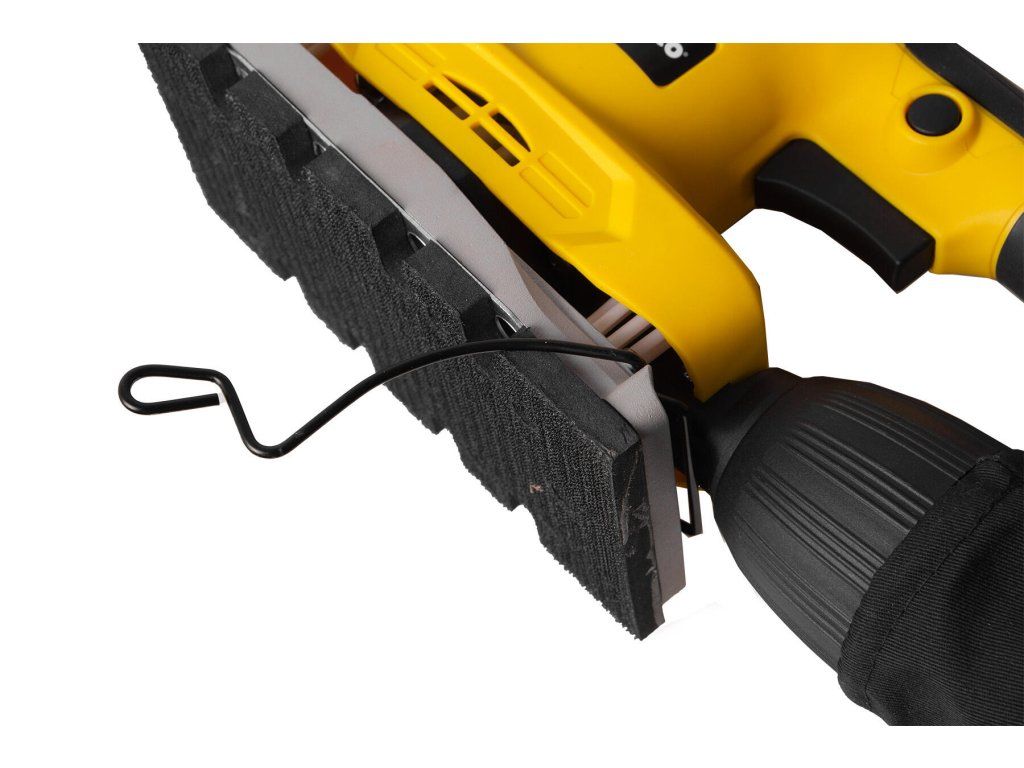 Kromě toho má tato vibrační bruska integrovanou možnost připojení prachového pytlíku nebo připojení odsavače prachu. To znamená, že při práci s nástrojem minimalizujete výření prachu a nečistot, což zlepšuje uživatelské prostředí a udržuje pracovní prostor čistý. Díky této vlastnosti se zásadně prodlužuje životnost nástroje.