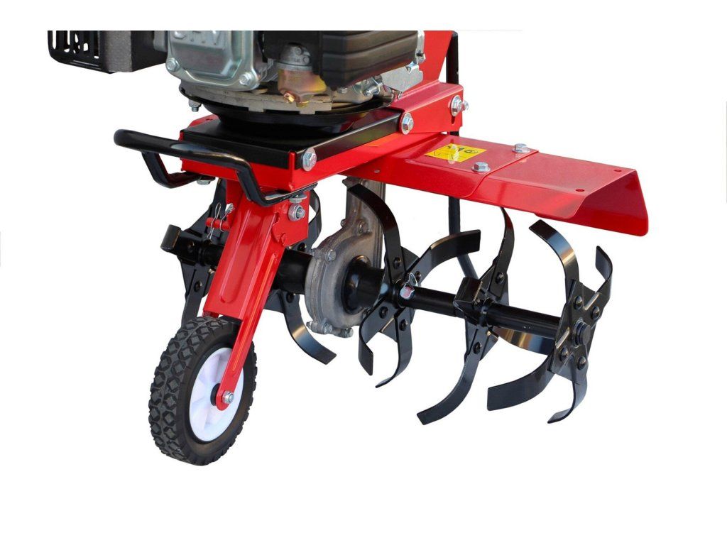 - Pro snadnou manipulaci je kultivátor vybaven pojezdovým vodícím kolem