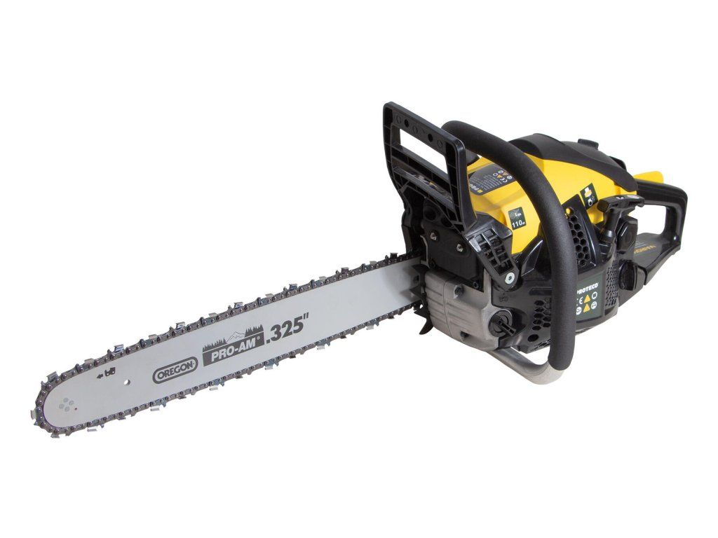 Řetězová pila benzínová Proteco je ideální pomocník pro řezání dřeva na zahradě, přípravu dříví do krbu, odvětvování, prořezávání, řezání palivového dříví apod. Zdařilá kombinace vysokootáčkového dvoutaktního motoru o zdvihovém objemu 50,8 cm ³ a výkonu 2,1 kW činí z motorové pily velmi oblíbeného komfortního a kompaktního pomocníka pro každého vášnivého kutila, či zahrádkáře.
