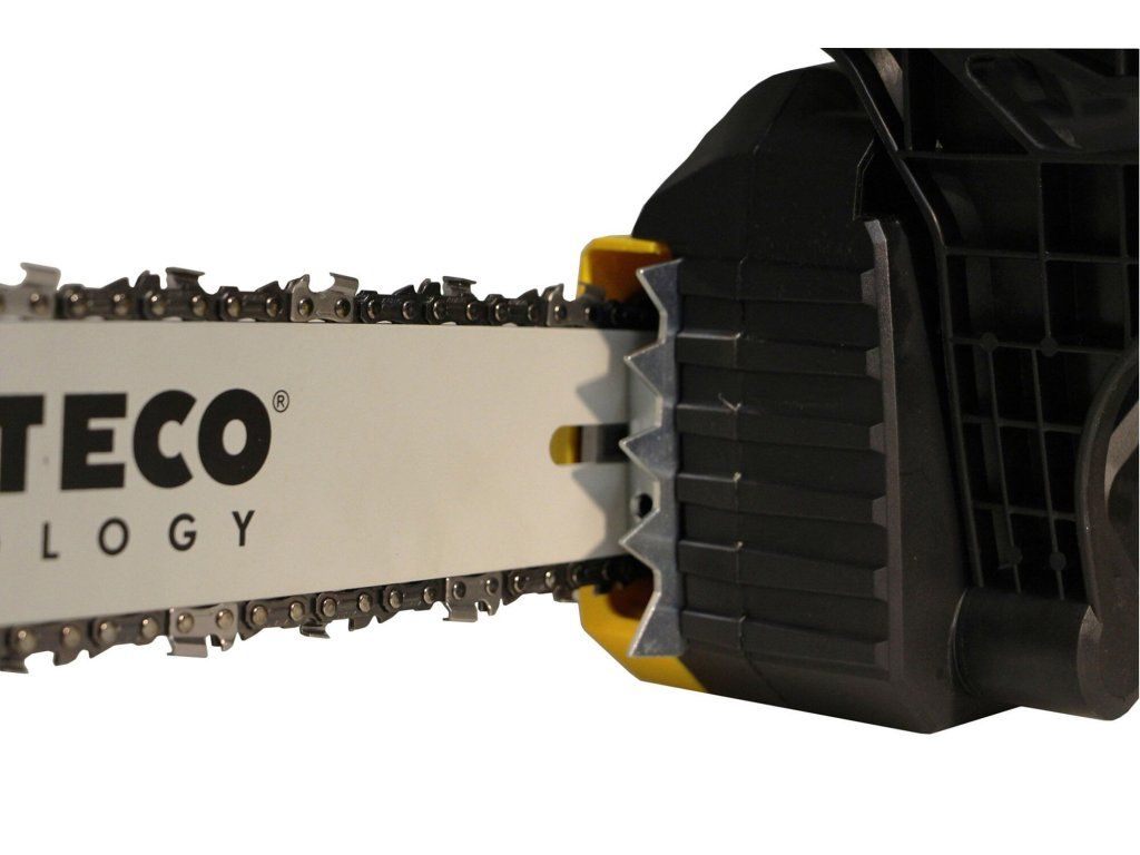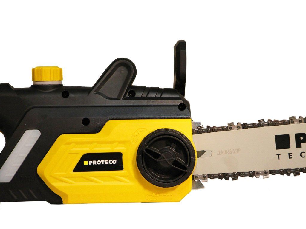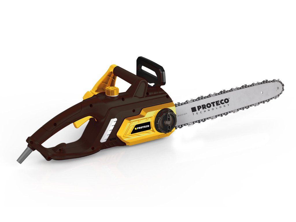 Elektrická řetězová pila Proteco s výkonným motorem 2 400 W a řídící elektronikou pro plynulý náběh do konstantních pracovních otáček. Konstrukce pily nabízí sadu standartních bezpečnostních prvků (doběhovou brzdu, bezpečnostní brzdu) a automatické mazání řetězu.