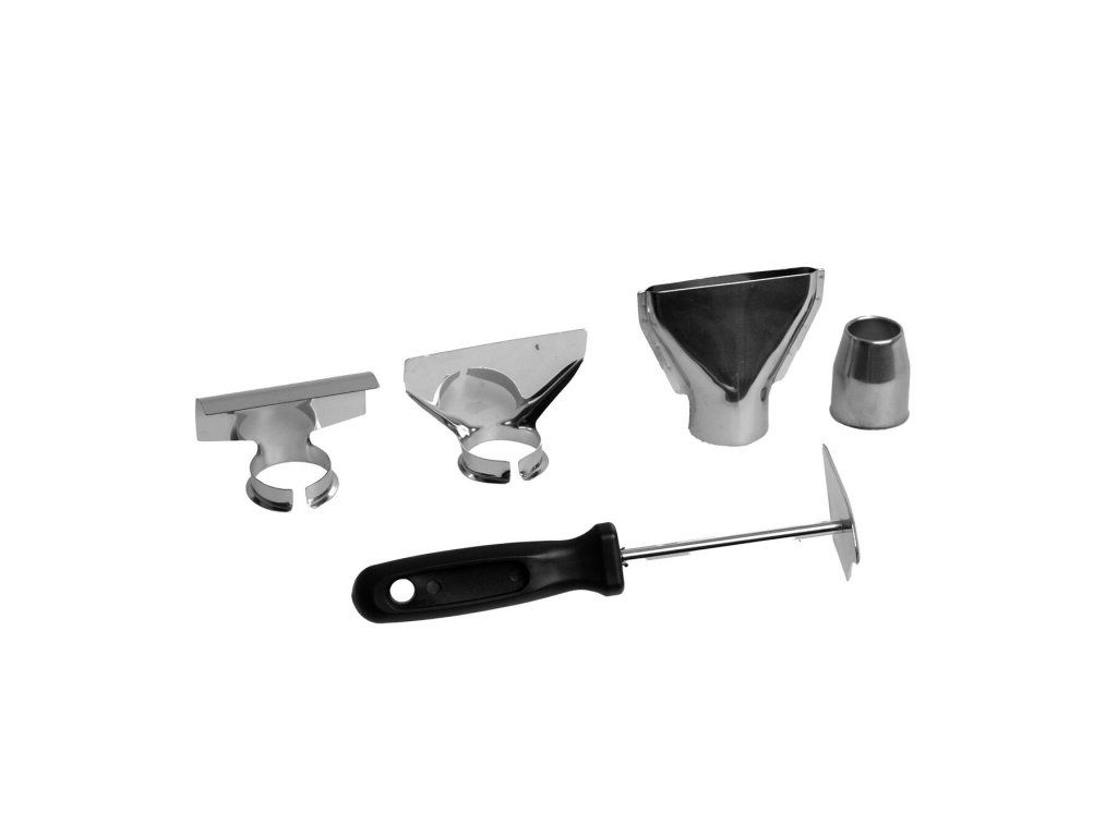 Součastí balení: Přepravní kufr, nástavec pro ochranu skla, nástavec pro svařování trubek, kuželový nástavec, nástavec pro sušení a rozmražování, škrabka na barvy a laky