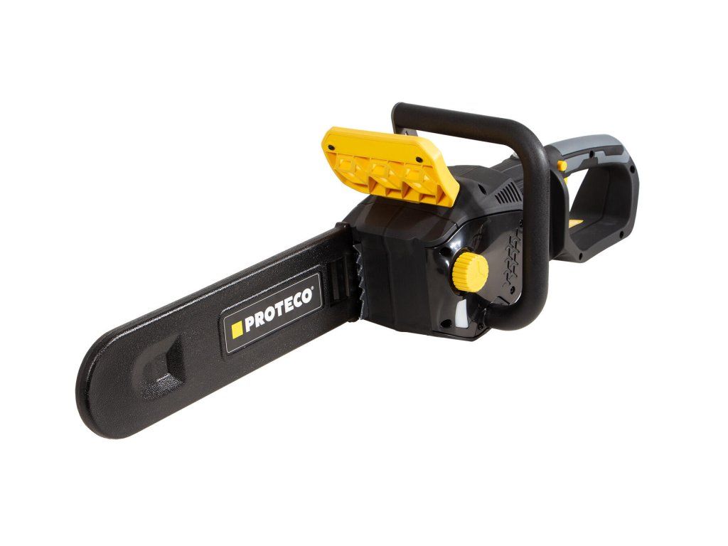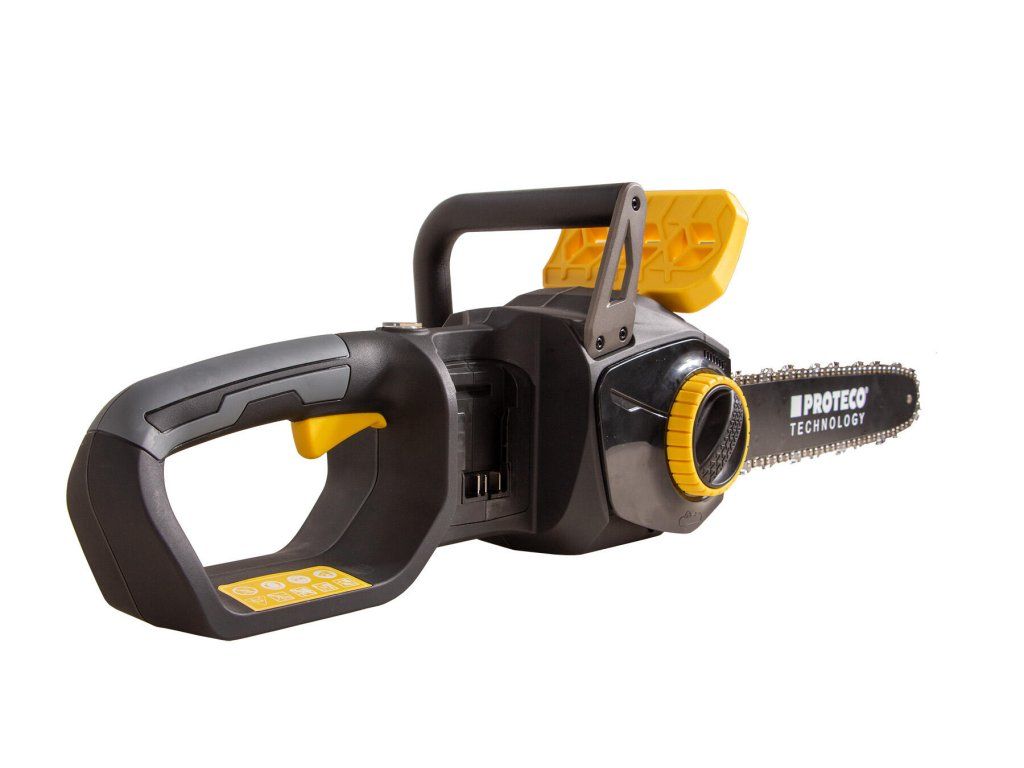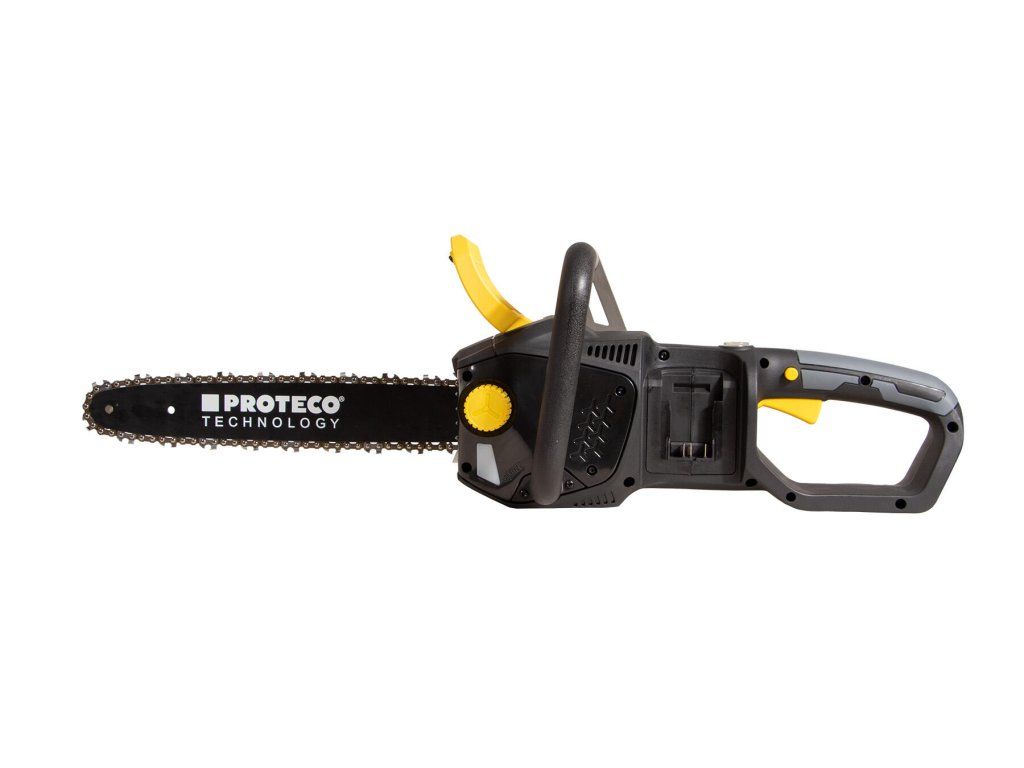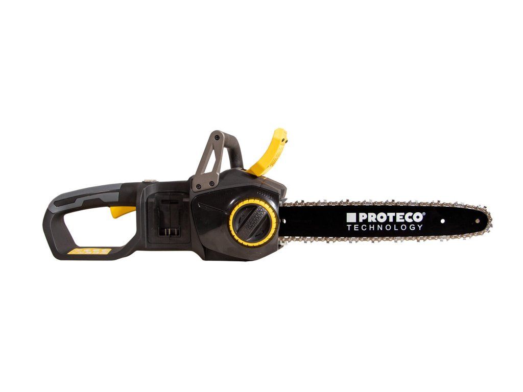 Akumulátorová řetězová pila PROTECO s délkou lišty 36 cm, je výborným pomocníkem při odvětvování stromů, rozřezávání kmenů, polen a také výrobě produktů ze dřeva. Bezuhlíkový motor poháněný dvěma akumulátory 20 V, poskytuje maximální kroutící moment a účinnost pro snadné řezání, dále zajišťuje tichý provoz a není omezován přívodními kabely.