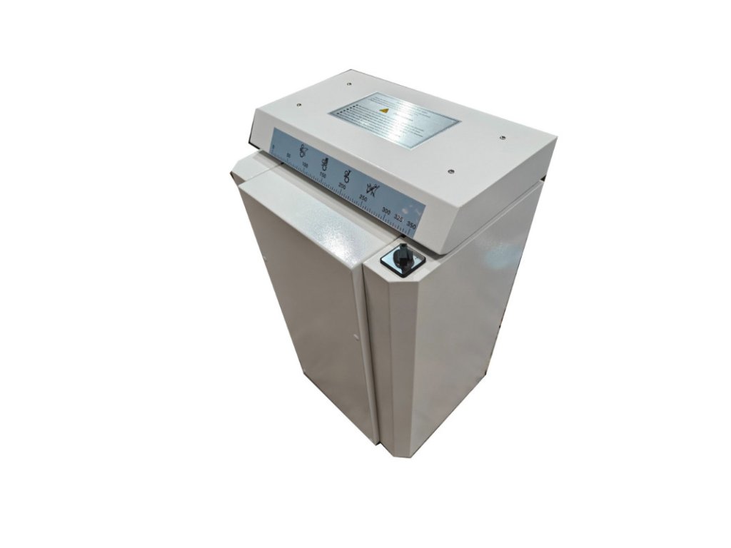 Skartovačka je napájena ze standardní sítě 230 V / 50 Hz a je vybavena okrajovým nožem, který automaticky odřízne přebytečnou lepenku, pokud překročí maximální vstupní šířku. Odříznutá část může být poté skartována. Robustní a spolehlivé provedení pro průmyslové použití.
