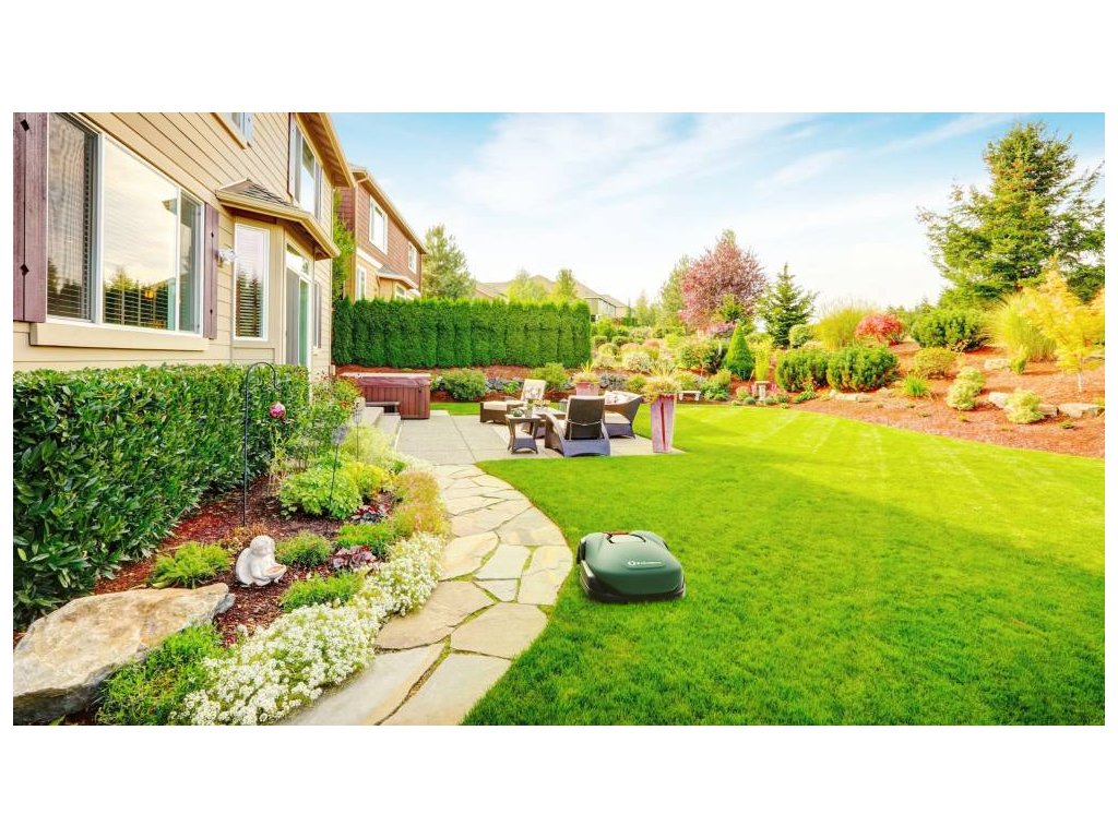 Celé sečení je uloženo v plovoucím rámu, takže perfektně kopíruje terén a vytváří hladký trávník přesně tak, jak je tvarovaná Vaše zahrada. Kapotáž stroje je uložena na 4 bodech umožňujících citlivé snímání nárazů ze všech stran, z vrchu i ze spodu. Celá kapotáž slouží, jako nárazník a celý výlisek kapotáže je důkladně vyztužen. Kapotáž překrývá také pojezdová kola, tvoří kryt sečící jednotce a současně vytváří bezpečnostní vzdálenost dle norem proti poranění o žací mechanismus. Sekací talíře jsou záměrně umístěny tak, aby byly co nejvíce u kraje a tím eliminuje nedosečenou plochu na minimum. Stroj několikrát týdně objede zahradu po obvodovém drátu proti směru hodinových ručiček, čímž zajistí perfektní střih okrajů. Při použití okrajové dlažby ve výši trávníku se můžete dosekávání vyvarovat úplně.
