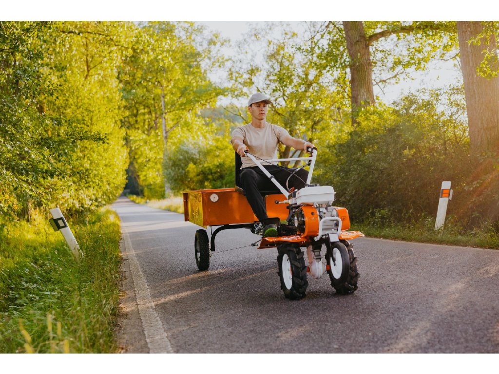 Jednoduchou přestavbou, kdy místo kultivačních nožů nasadíte kola můžete připojit vozík nebo bubnovou sekačku a získáváte dalšího užitečného pomocníka na Vaší zahradu. Libovolně lze k tomuto kultivátoru rovněž dokoupit příslušenství k obdělávání půdy.