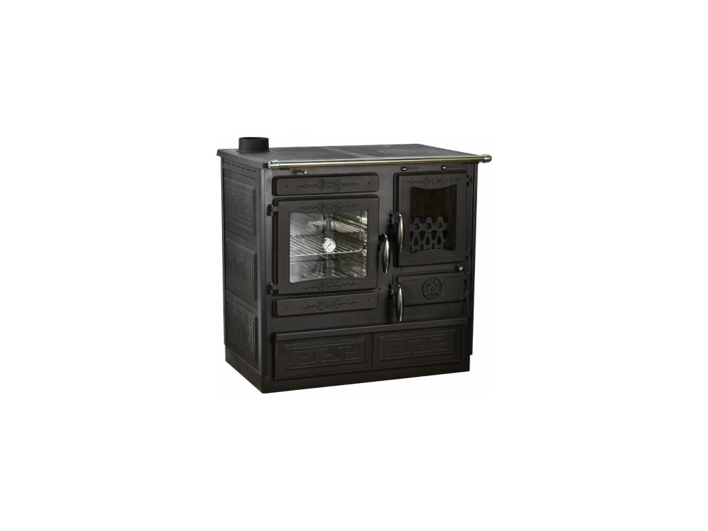Dvířka disponují teploměrem. Prostor topeniště je vybaven dvěma rošty pro letní a zimní provoz. Pod celým sporákem se nachází praktická zásuvka, například na uskladnění paliva.