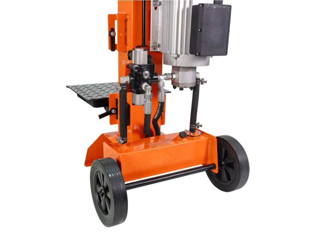 - Pro snadnou manipulaci je štípač vybaven kolečky. Lze jej snadno přemístit z jednoho místa na druhé, ať už na nerovném terénu nebo ve stísněných prostorech, bez nadměrné námahy.