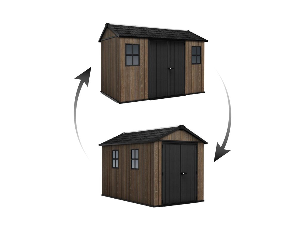Jednou z největších výhod domku Apex je možnost oboustranného sestavení. Sami si zvolíte, kam umístit okna a dveře, aby se co nejlépe přizpůsobily uspořádání vaší zahrady. Dvojité stěny navíc zajišťují vysokou stabilitu a odolnost konstrukce.