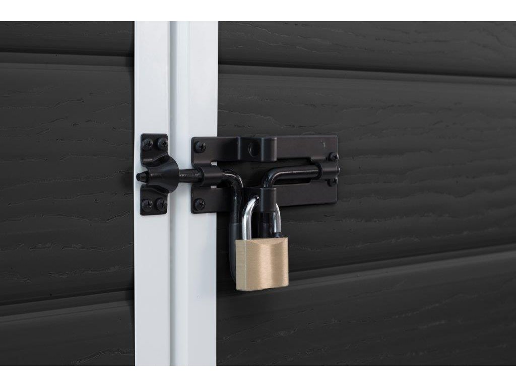 Součástí domku je vlastní podlahový panel, který chrání uložené předměty před vlhkem a nečistotami. Díky vestavěnému ventilačnímu systému je uvnitř zajištěno dostatečné proudění vzduchu, což zabraňuje vzniku plísní nebo kondenzaci vlhkosti. Uzamykatelné dveře pak chrání vše uvnitř před nepovolanými osobami.